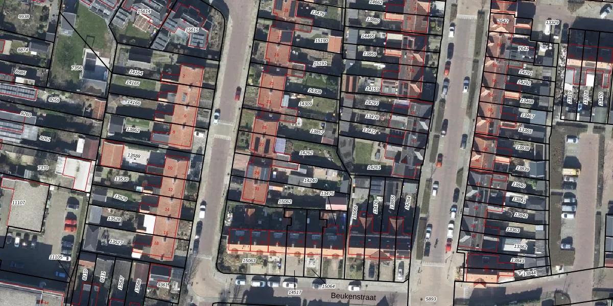 Gebruik de zoekbalk of klik op een perceel om informatie over het perceel te bekijken.