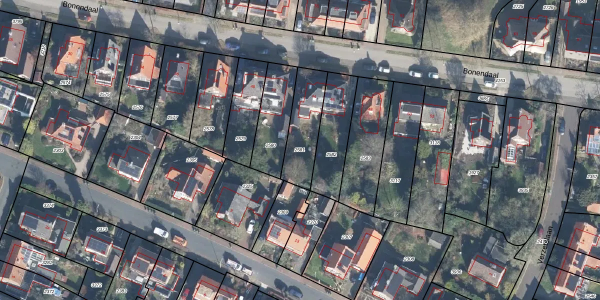 Gebruik de zoekbalk of klik op een perceel om informatie over het perceel te bekijken.