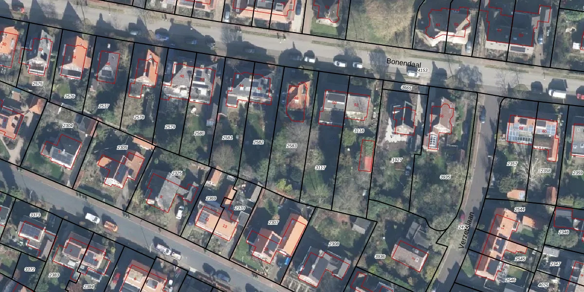 Gebruik de zoekbalk of klik op een perceel om informatie over het perceel te bekijken.