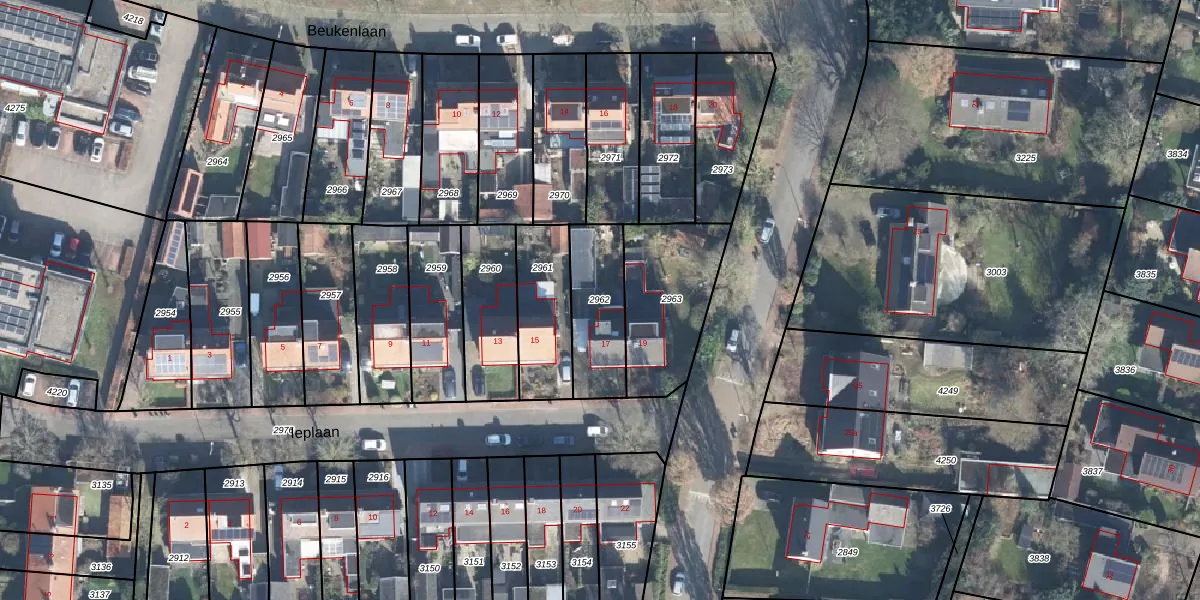 Gebruik de zoekbalk of klik op een perceel om informatie over het perceel te bekijken.