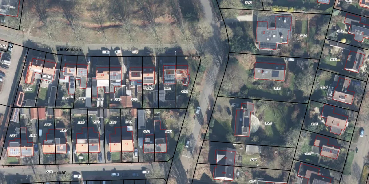 Gebruik de zoekbalk of klik op een perceel om informatie over het perceel te bekijken.