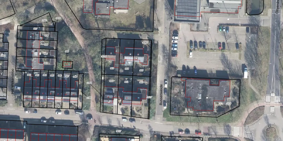 Gebruik de zoekbalk of klik op een perceel om informatie over het perceel te bekijken.