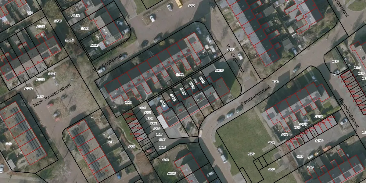 Gebruik de zoekbalk of klik op een perceel om informatie over het perceel te bekijken.