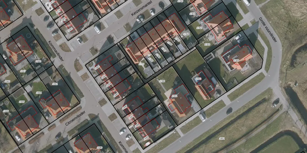 Gebruik de zoekbalk of klik op een perceel om informatie over het perceel te bekijken.