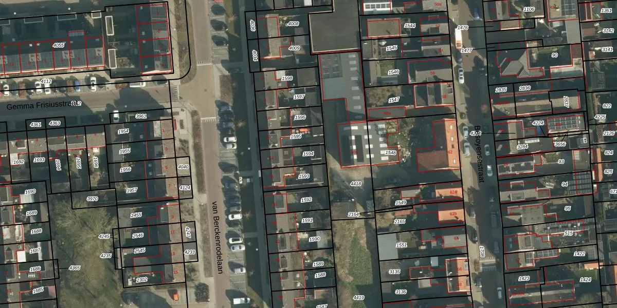 Gebruik de zoekbalk of klik op een perceel om informatie over het perceel te bekijken.
