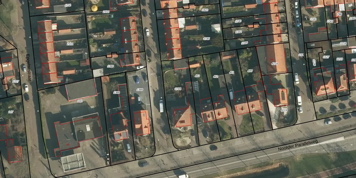 Gebruik de zoekbalk of klik op een perceel om informatie over het perceel te bekijken.