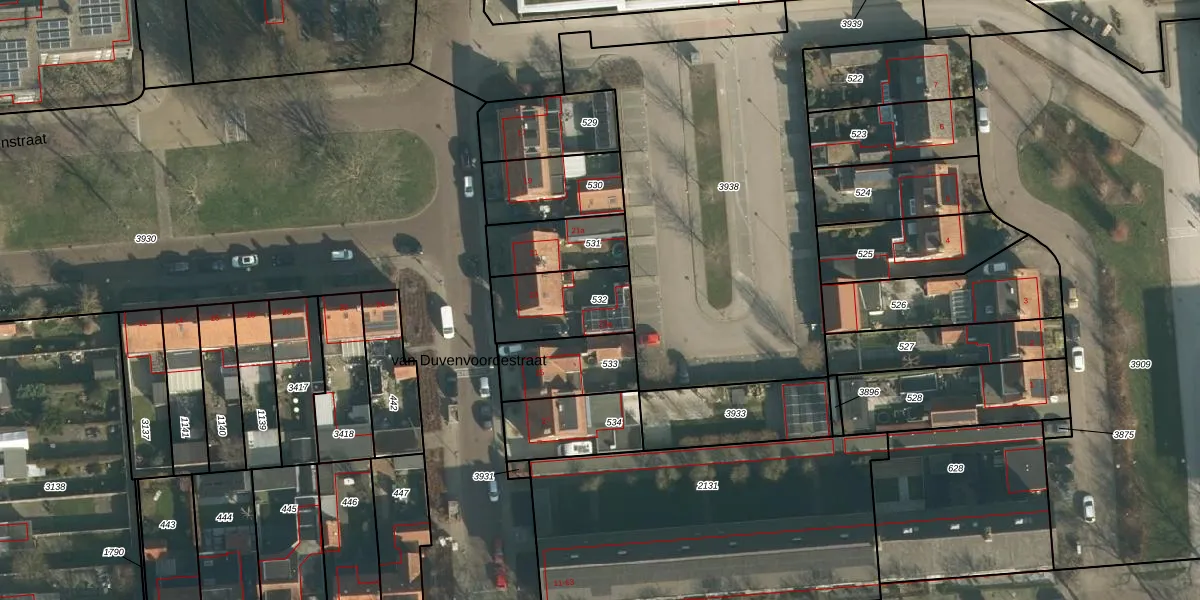 Gebruik de zoekbalk of klik op een perceel om informatie over het perceel te bekijken.
