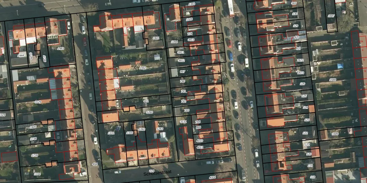 Gebruik de zoekbalk of klik op een perceel om informatie over het perceel te bekijken.