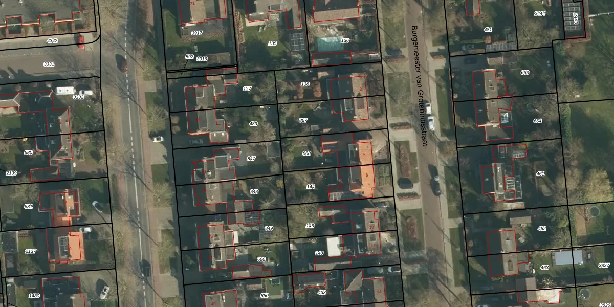 Gebruik de zoekbalk of klik op een perceel om informatie over het perceel te bekijken.