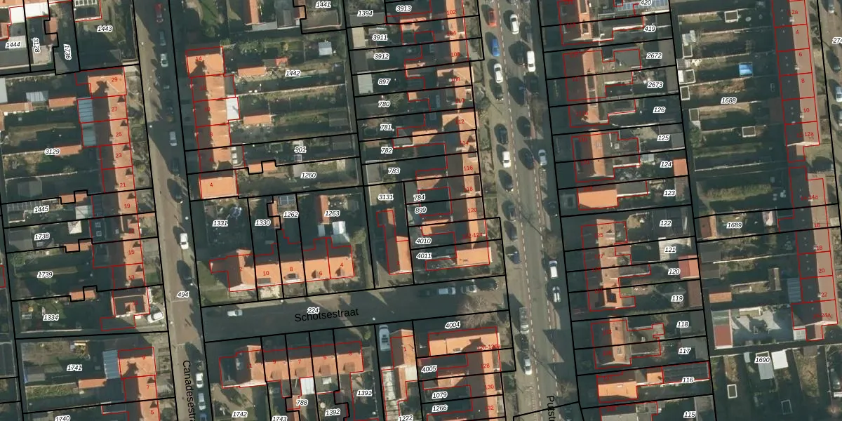 Gebruik de zoekbalk of klik op een perceel om informatie over het perceel te bekijken.
