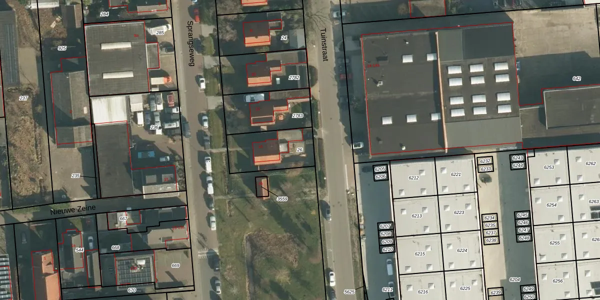Gebruik de zoekbalk of klik op een perceel om informatie over het perceel te bekijken.