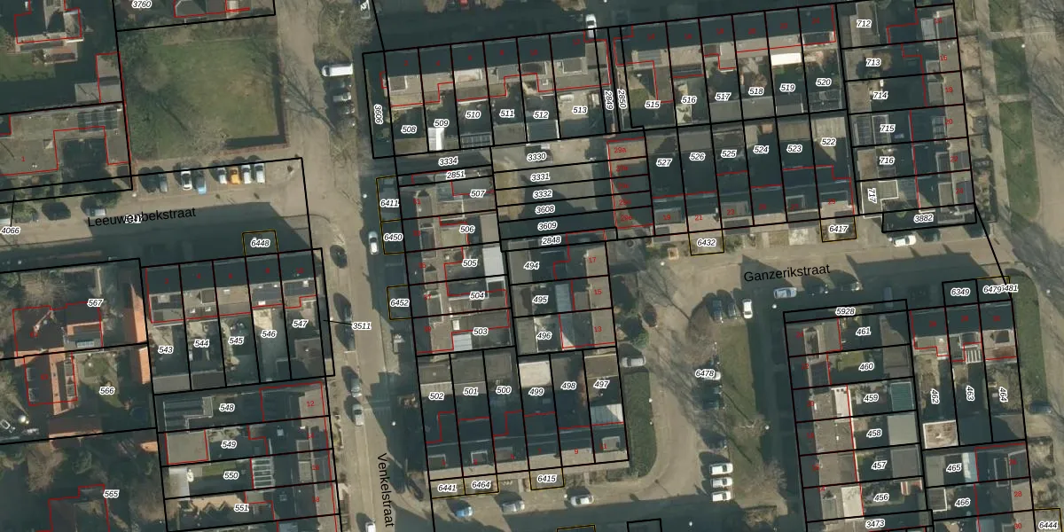 Gebruik de zoekbalk of klik op een perceel om informatie over het perceel te bekijken.