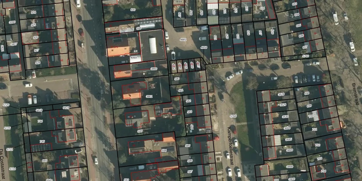 Gebruik de zoekbalk of klik op een perceel om informatie over het perceel te bekijken.