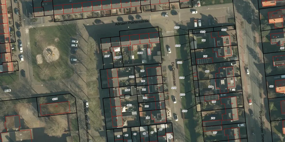 Gebruik de zoekbalk of klik op een perceel om informatie over het perceel te bekijken.
