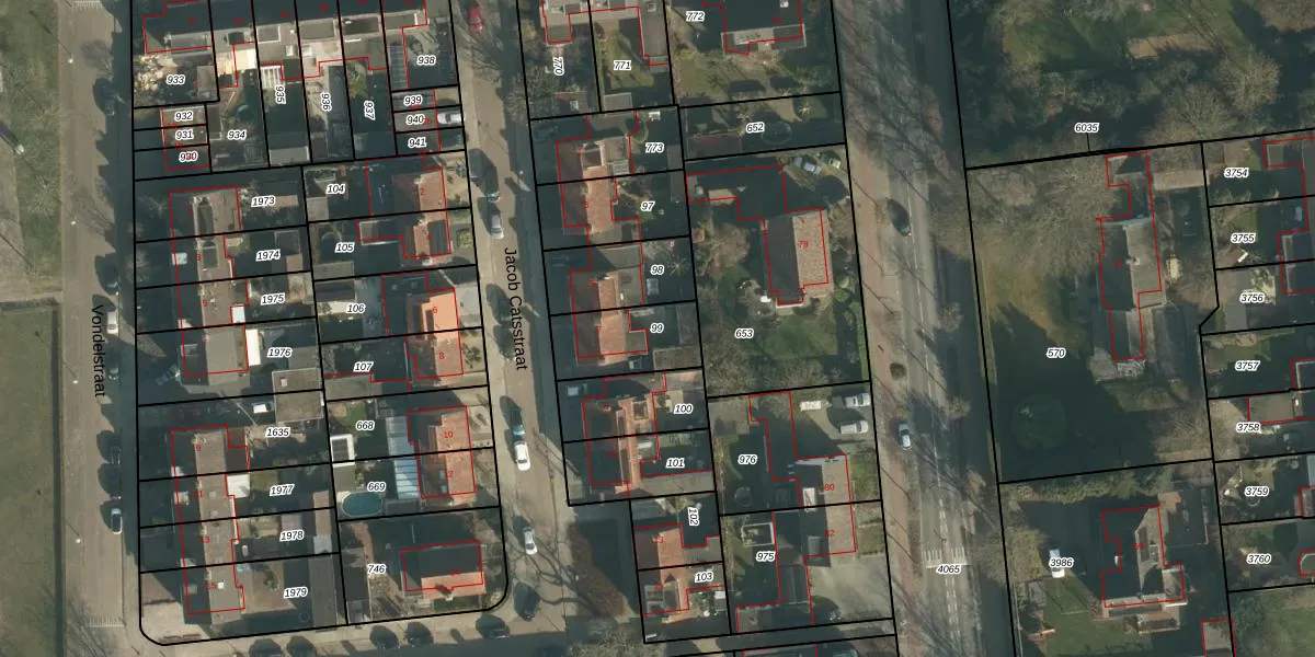 Gebruik de zoekbalk of klik op een perceel om informatie over het perceel te bekijken.