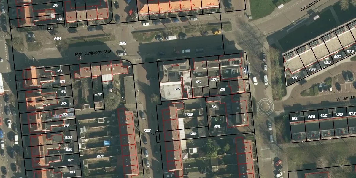 Gebruik de zoekbalk of klik op een perceel om informatie over het perceel te bekijken.
