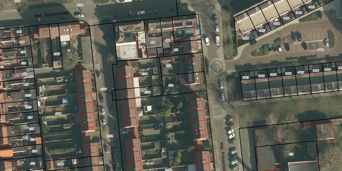 Gebruik de zoekbalk of klik op een perceel om informatie over het perceel te bekijken.
