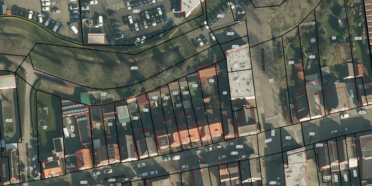 Gebruik de zoekbalk of klik op een perceel om informatie over het perceel te bekijken.