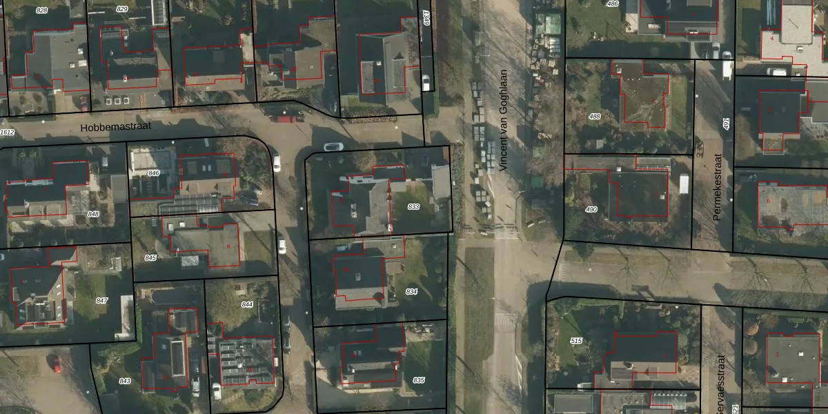 Gebruik de zoekbalk of klik op een perceel om informatie over het perceel te bekijken.