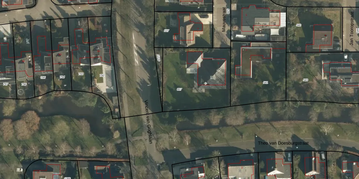Gebruik de zoekbalk of klik op een perceel om informatie over het perceel te bekijken.