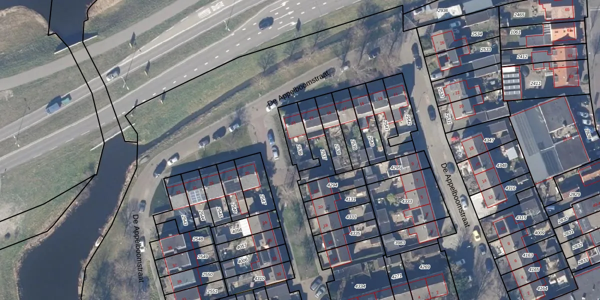 Gebruik de zoekbalk of klik op een perceel om informatie over het perceel te bekijken.
