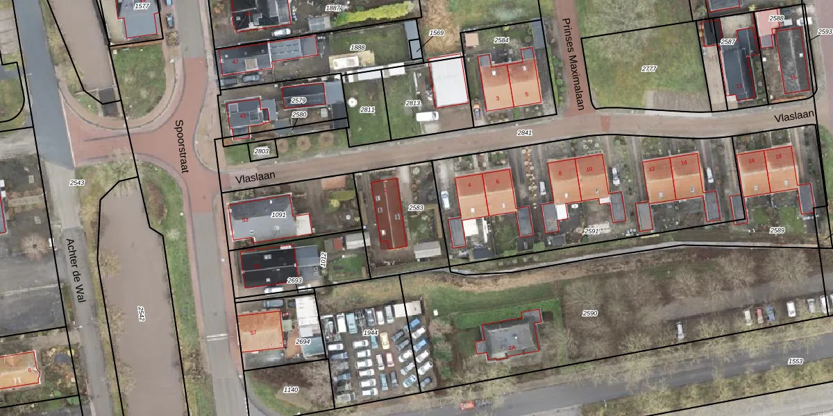 Gebruik de zoekbalk of klik op een perceel om informatie over het perceel te bekijken.