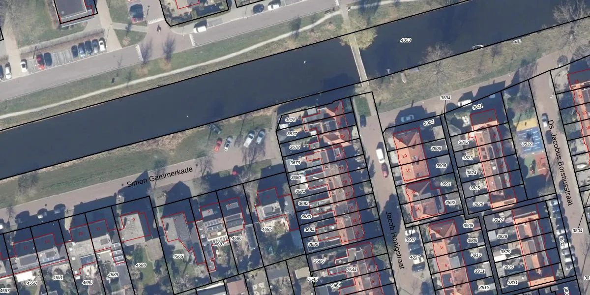 Gebruik de zoekbalk of klik op een perceel om informatie over het perceel te bekijken.