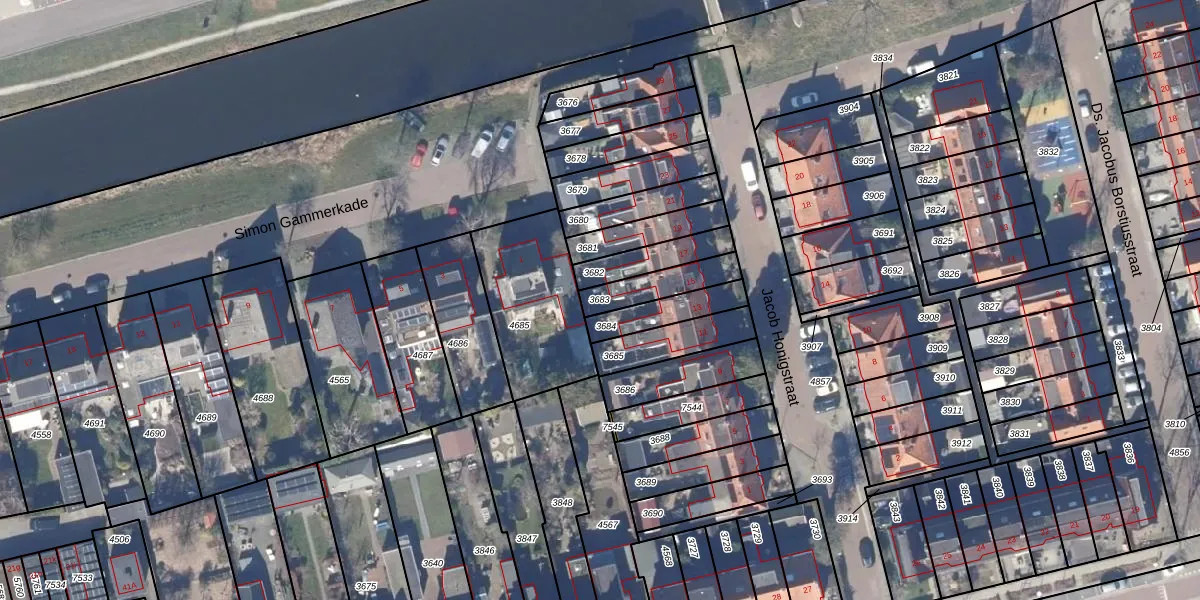 Gebruik de zoekbalk of klik op een perceel om informatie over het perceel te bekijken.