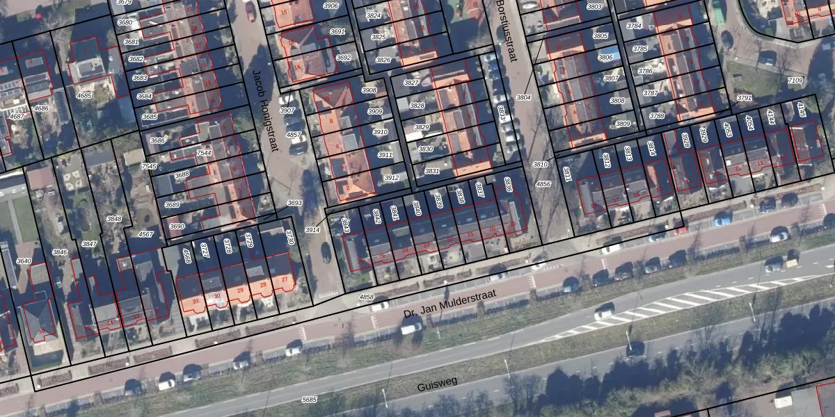 Gebruik de zoekbalk of klik op een perceel om informatie over het perceel te bekijken.