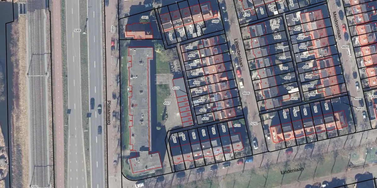 Gebruik de zoekbalk of klik op een perceel om informatie over het perceel te bekijken.