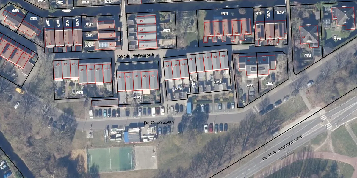 Gebruik de zoekbalk of klik op een perceel om informatie over het perceel te bekijken.