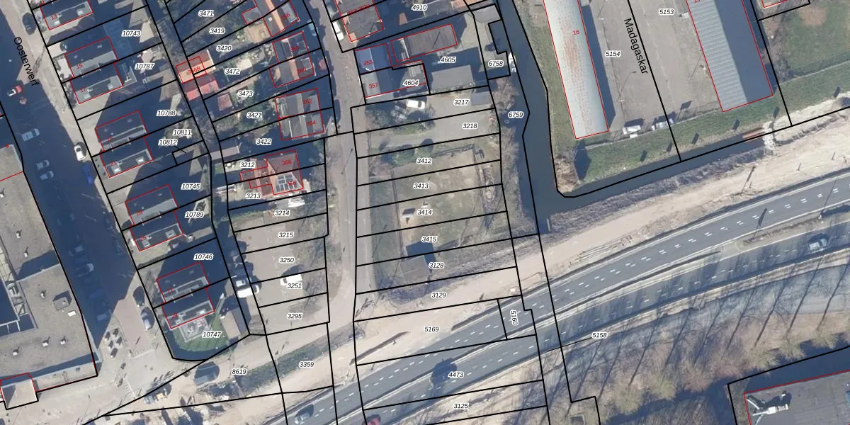 Gebruik de zoekbalk of klik op een perceel om informatie over het perceel te bekijken.
