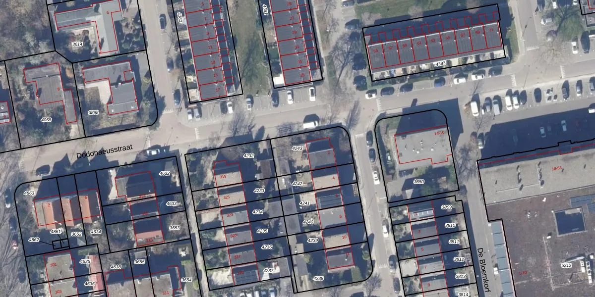 Gebruik de zoekbalk of klik op een perceel om informatie over het perceel te bekijken.