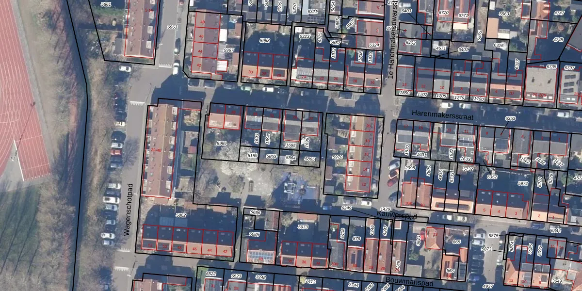 Gebruik de zoekbalk of klik op een perceel om informatie over het perceel te bekijken.