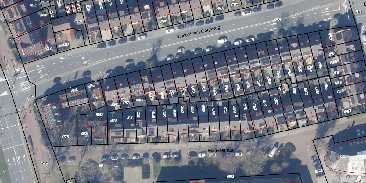 Gebruik de zoekbalk of klik op een perceel om informatie over het perceel te bekijken.