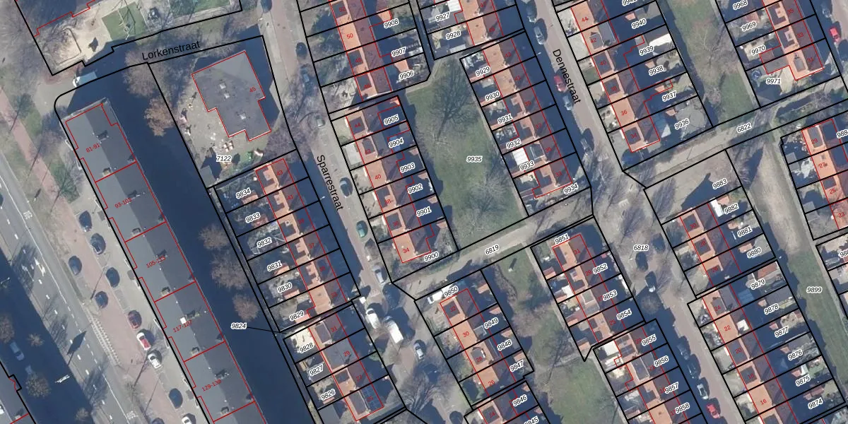 Gebruik de zoekbalk of klik op een perceel om informatie over het perceel te bekijken.