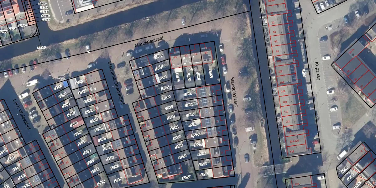 Gebruik de zoekbalk of klik op een perceel om informatie over het perceel te bekijken.