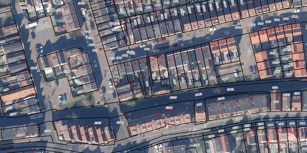 Gebruik de zoekbalk of klik op een perceel om informatie over het perceel te bekijken.