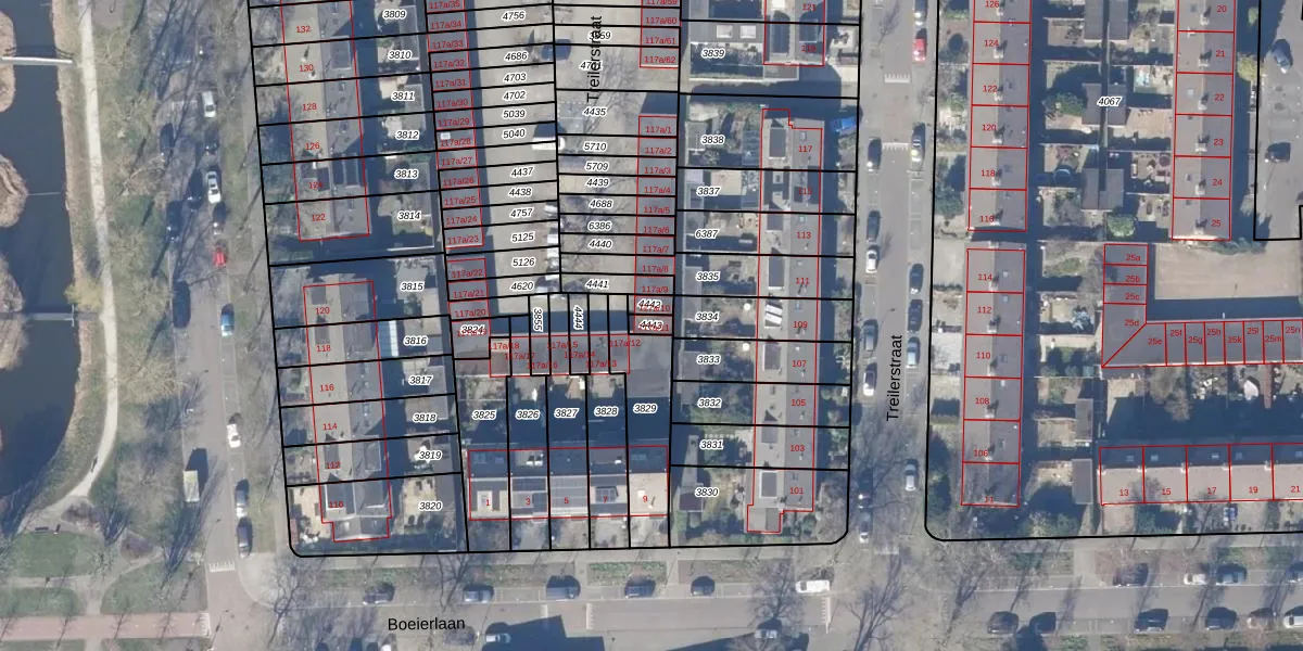 Gebruik de zoekbalk of klik op een perceel om informatie over het perceel te bekijken.