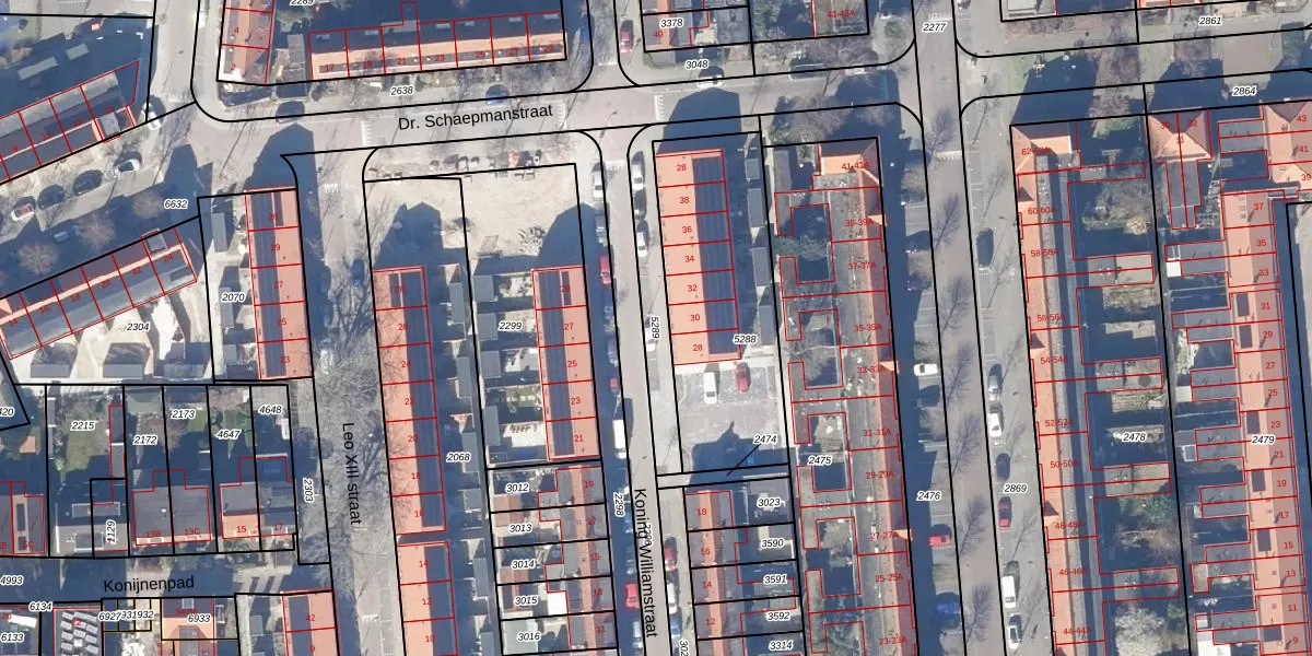 Gebruik de zoekbalk of klik op een perceel om informatie over het perceel te bekijken.