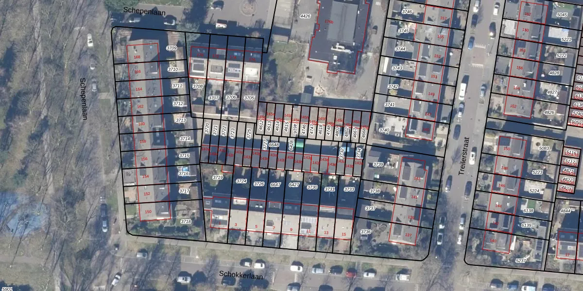 Gebruik de zoekbalk of klik op een perceel om informatie over het perceel te bekijken.