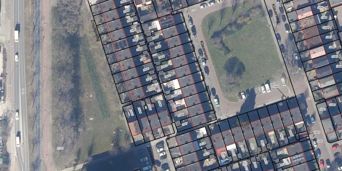 Gebruik de zoekbalk of klik op een perceel om informatie over het perceel te bekijken.