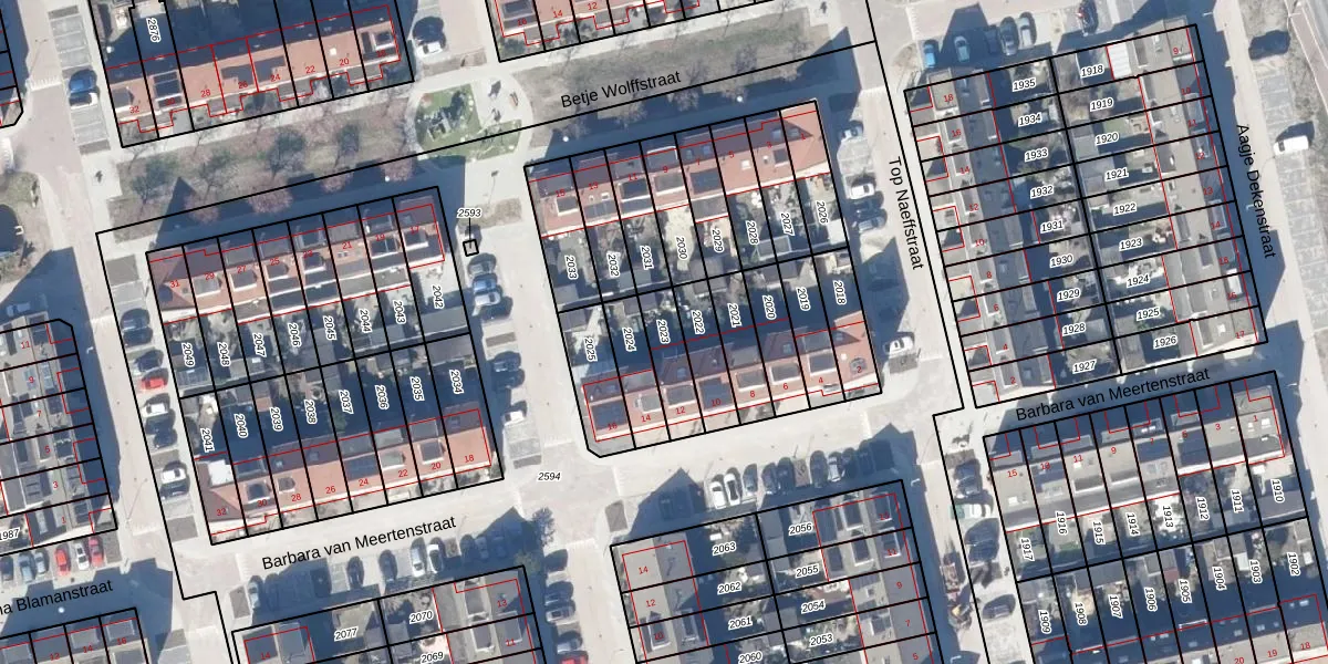 Gebruik de zoekbalk of klik op een perceel om informatie over het perceel te bekijken.