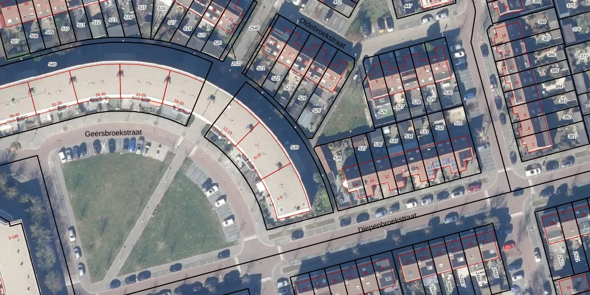 Gebruik de zoekbalk of klik op een perceel om informatie over het perceel te bekijken.