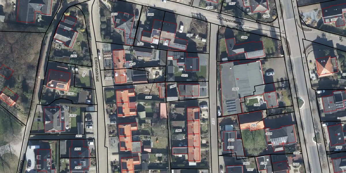 Gebruik de zoekbalk of klik op een perceel om informatie over het perceel te bekijken.