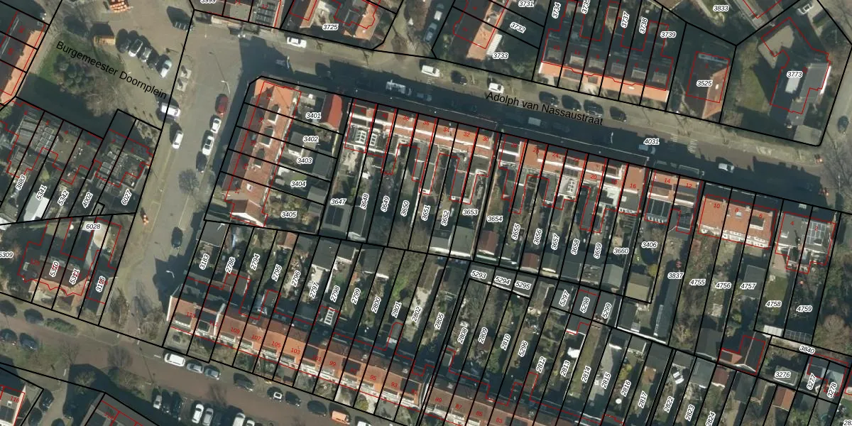 Gebruik de zoekbalk of klik op een perceel om informatie over het perceel te bekijken.