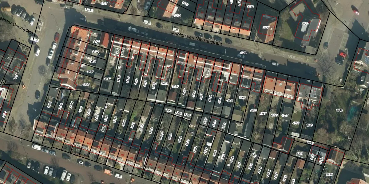 Gebruik de zoekbalk of klik op een perceel om informatie over het perceel te bekijken.