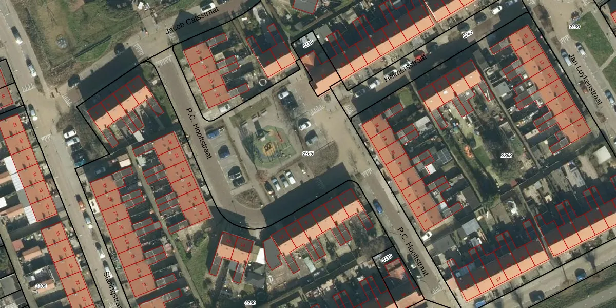 Gebruik de zoekbalk of klik op een perceel om informatie over het perceel te bekijken.