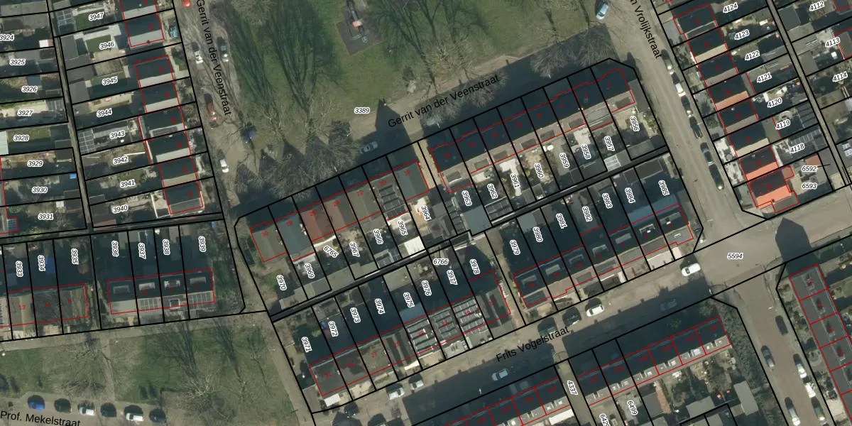 Gebruik de zoekbalk of klik op een perceel om informatie over het perceel te bekijken.