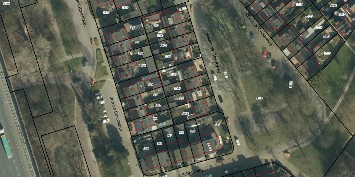 Gebruik de zoekbalk of klik op een perceel om informatie over het perceel te bekijken.